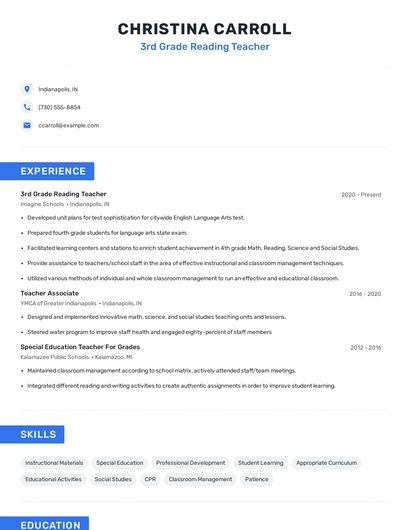 Build a professional 3rd grade reading teacher resume in minutes. Our AI resume writing assistant will guide you through every step of the process, and you can choose from 10+ resume templates to create your 3rd grade reading teacher resume.7. Instructional Techniques
