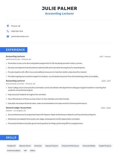 The most important skills for an accounting lecturer resume and required skills for an accounting lecturer to have include:
