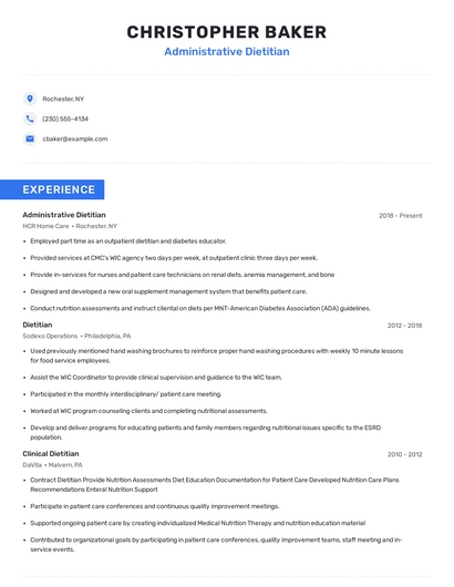 Choose from 10+ customizable administrative dietitian resume templates
