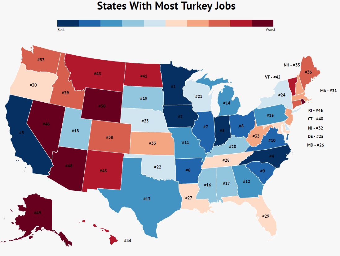 We dug into USDA data like it was a Thanksgiving dinner to find which states have the most jobs in the turkey industry — and which ones hatch the most of that uniquely American (and delicious) bird.