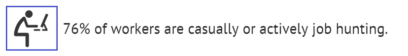 - 76% of currently employed workers are casually or actively job hunting.