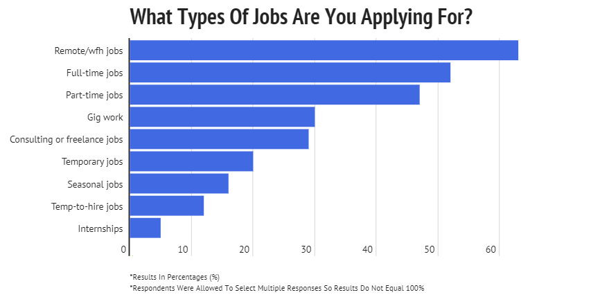 - 63% of job seekers are looking for remote or work-from-home jobs; More than any other job type.