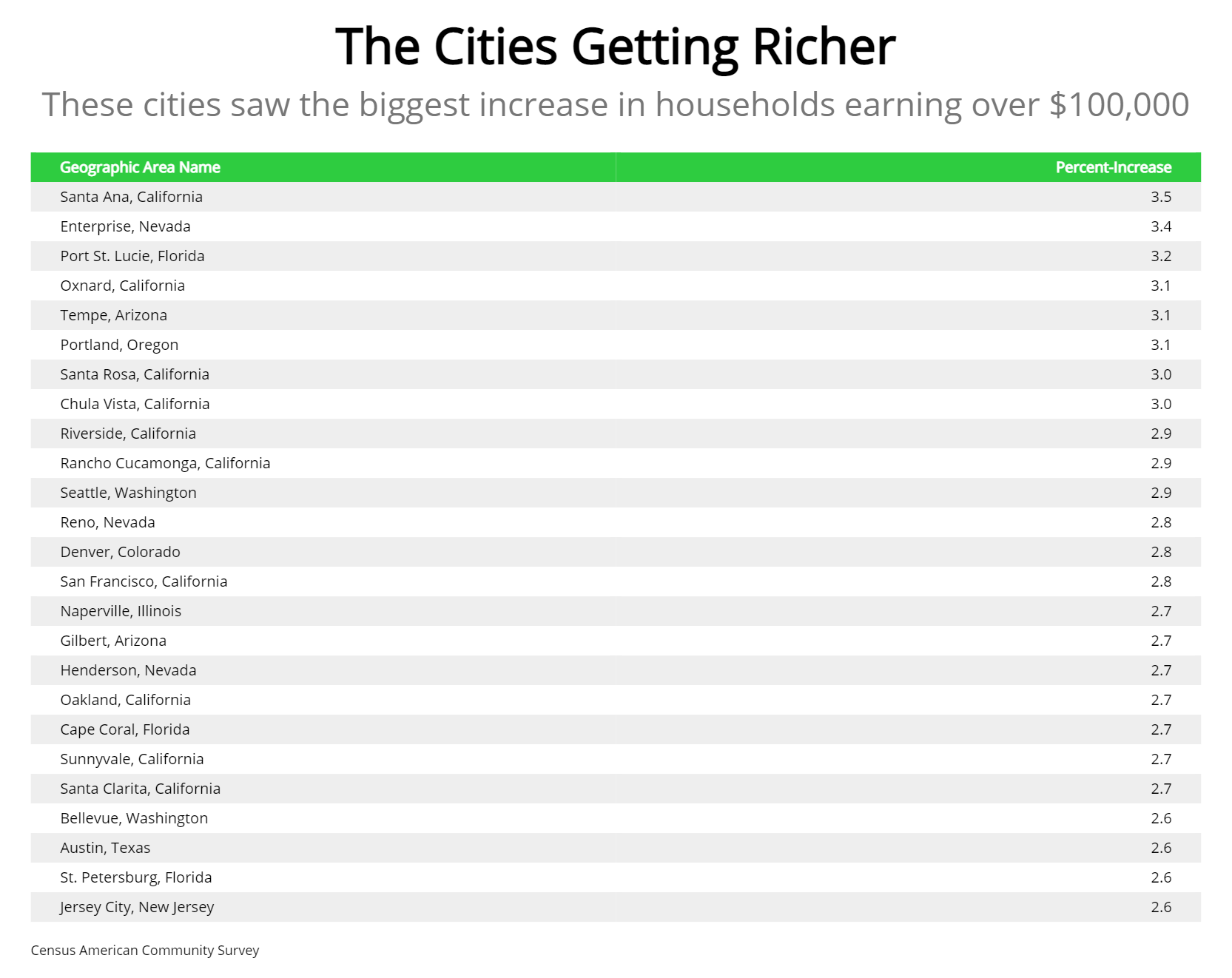 | 100 | Grand Rapids, Michigan | $34,421 | $154,634 | 15 |