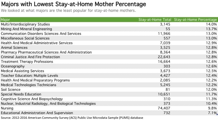 - Six of the top 11 majors with the highest percentage of stay-at-home moms fall under the engineering umbrella