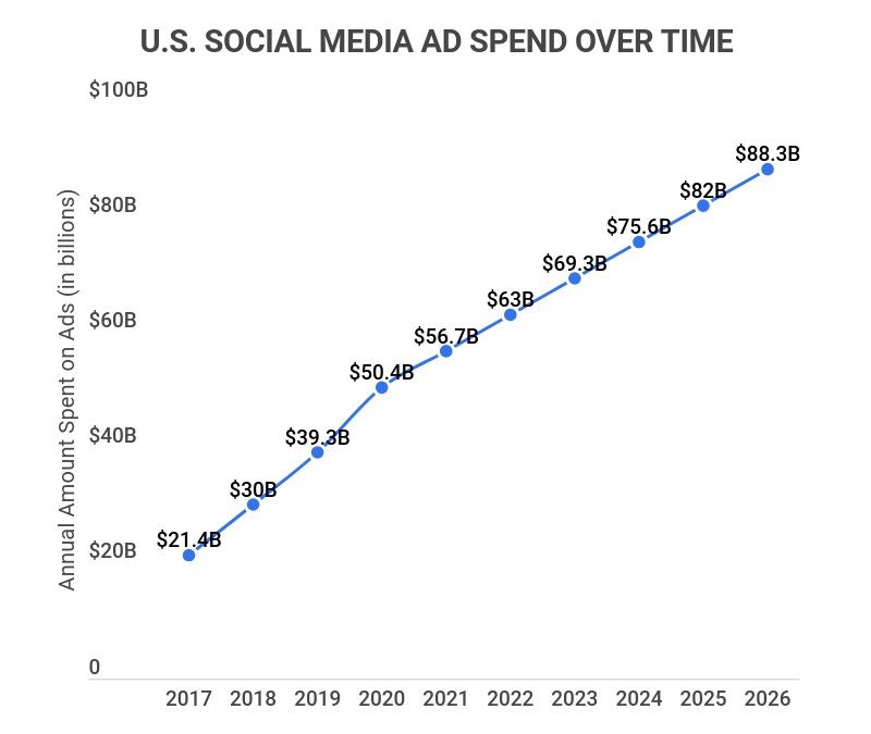 By the end of 2022, U.S. social media ad spending was projected to reach $63 billion.