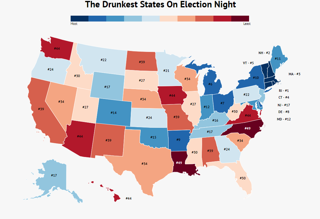This analysis primarily reflects the interest and intent to drink liquor. It’s entirely possible that residents in other states opted for beer or prepared their drinks in advance for the Election Night festivities.