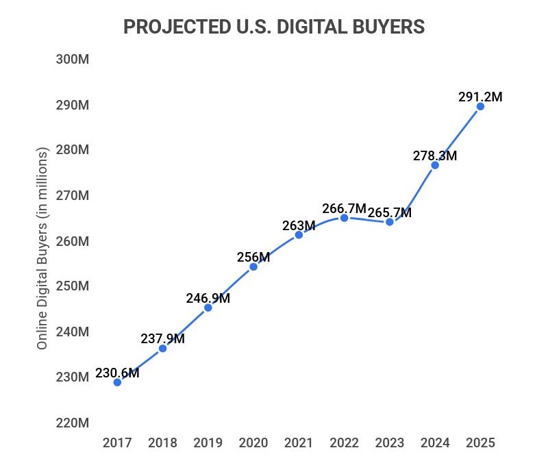 Statista. “Number Of Digital Buyers In The United States 2017-2025.” Accessed on November 9, 2021.