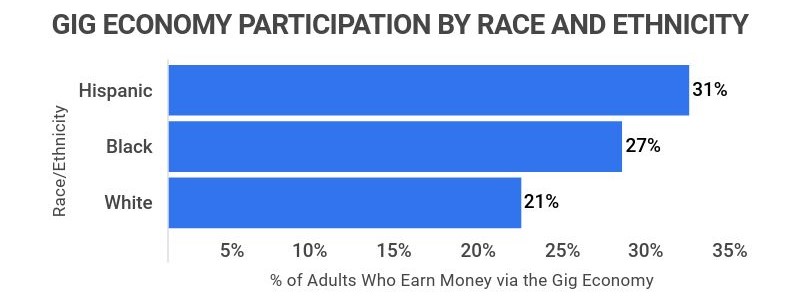 In comparison, 27% of African Americans and 21% of White adults depend on gig roles.
