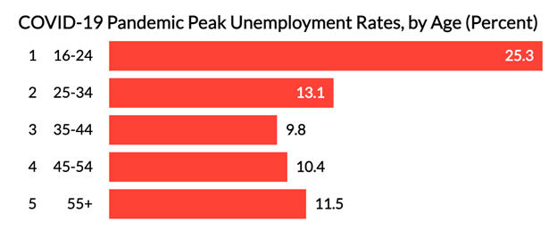 Younger demographics experienced the highest peak unemployment rates during the Great Recession.