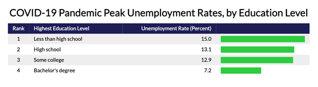 The COVID-19 pandemic precipitated the most recent recession, with unemployment soaring to 14.7%.