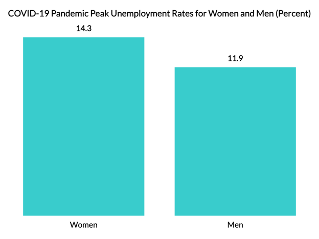 In May 2020, the unemployment rate for women was 14.3%, significantly higher than men’s at 11.9%.