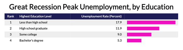 Individuals with lower educational attainment faced higher unemployment rates during the Great Recession compared to those with higher education levels.