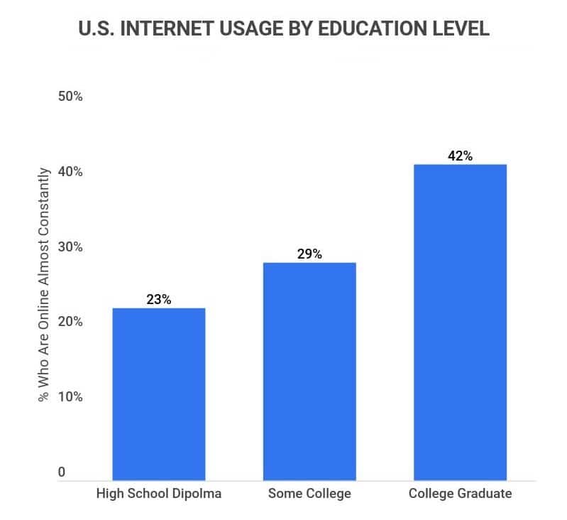 42% of those who’ve graduated college say they’re online almost constantly.