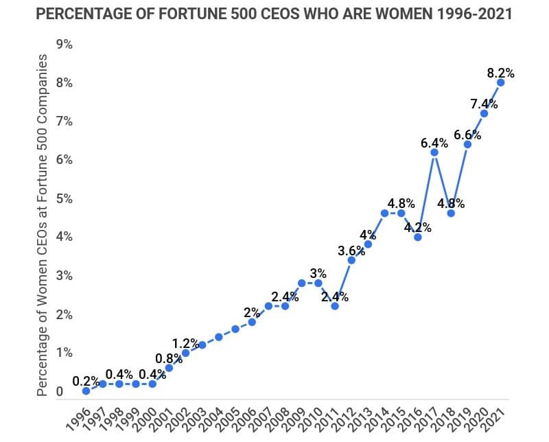 As of January 2023, over 10% of Fortune 500 companies are led by women.