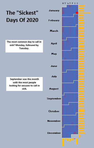 For this data, we turned to our own website traffic. We analyzed traffic patterns and visitors to our article on Tips For Calling In Sick- Even When You’re Not. We looked at all website visits for 2020.