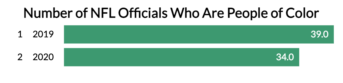 However, the NFL’s score decreased in terms of senior administration representation, and the number of POC officials decreased from a record high of 39 in 2019 to 34 in 2022.