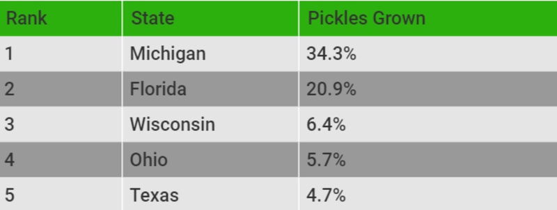 States That Produce the Most Pickles
