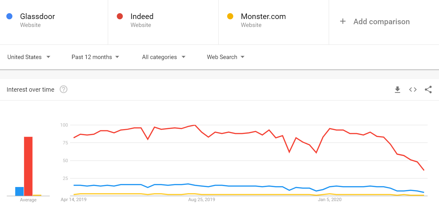This one was pretty simple. We used Google Trends to determine how job search behavior has changed since March, examining the past year in search behavior.