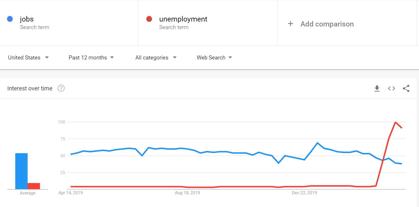 Ultimately, while you might expect the new unemployed to search for “jobs” after “unemployment,” we are in the middle of a pandemic.