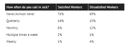 Dissatisfied employees are 50% more likely to take sick leave monthly and 300% more likely to do so weekly.
