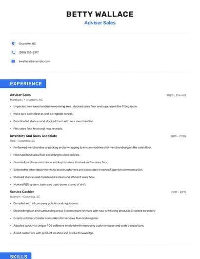Build a professional adviser sales resume in minutes. Browse through our resume examples to identify the best way to word your resume. Then choose from 5+ resume templates to create your adviser sales resume.