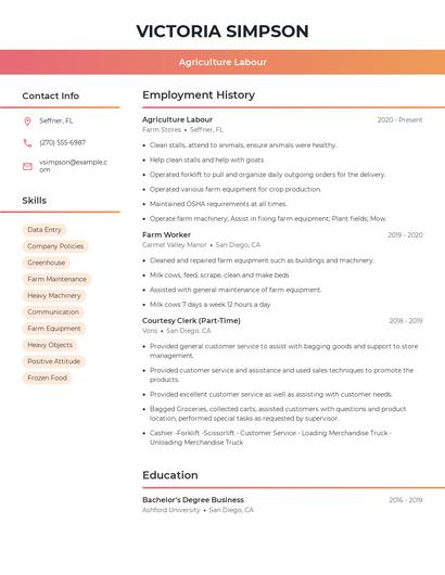 When your background is strong enough, you can start writing your agriculture labour resume.