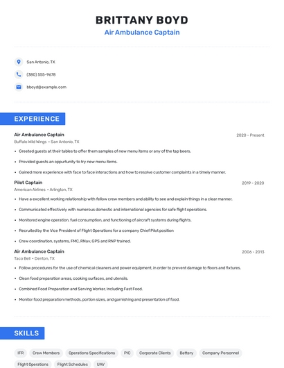Air ambulance captain skills for your resume and career