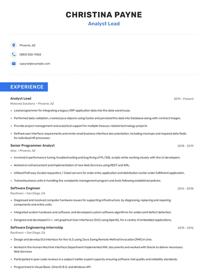 Choose from 10+ customizable analyst lead resume templates
