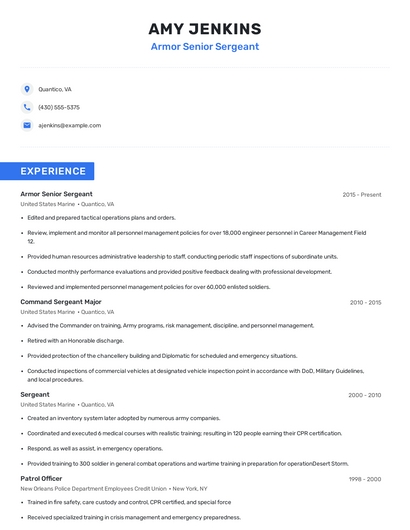 The most important skills for an armor senior sergeant resume and required skills for an armor senior sergeant to have include: