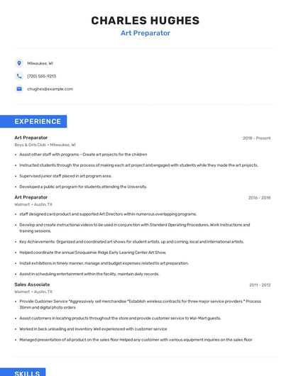 The most important skills for an art preparator resume and required skills for an art preparator to have include: