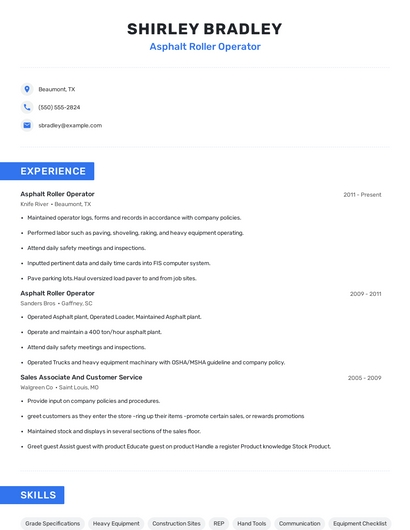 Choose from 10+ customizable asphalt roller operator resume templates