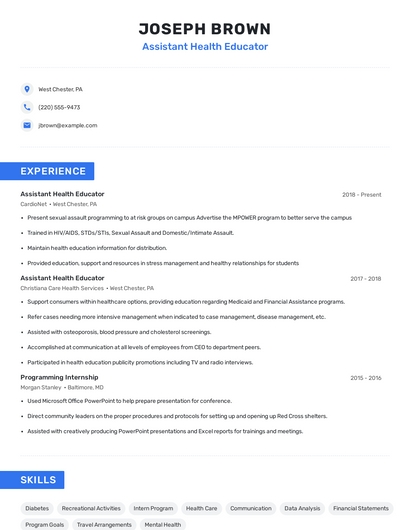The most important skills for an assistant health educator resume and required skills for an assistant health educator to have include: