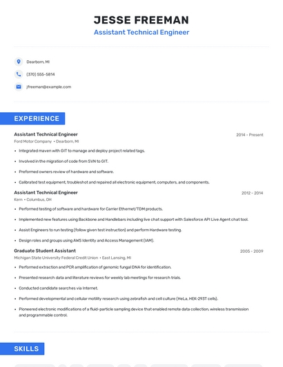 Choose from 10+ customizable assistant technical engineer resume templates