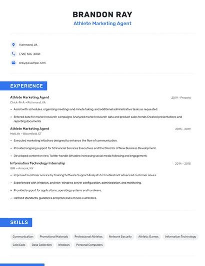 Athlete marketing agent skills for your resume and career