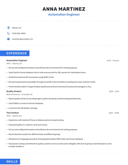 Build a professional automation engineer resume in minutes. Browse through our resume examples to identify the best way to word your resume. Then choose from 5+ resume templates to create your automation engineer resume.