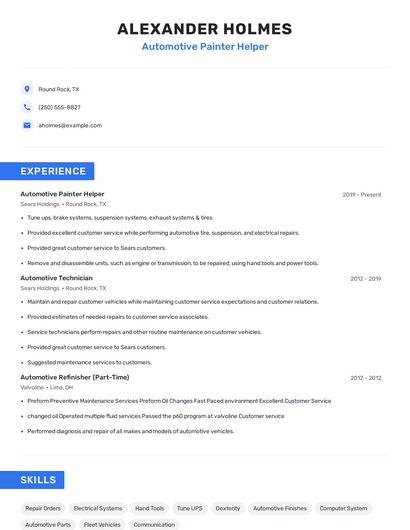 The most important skills for an automotive painter helper resume and required skills for an automotive painter helper to have include: