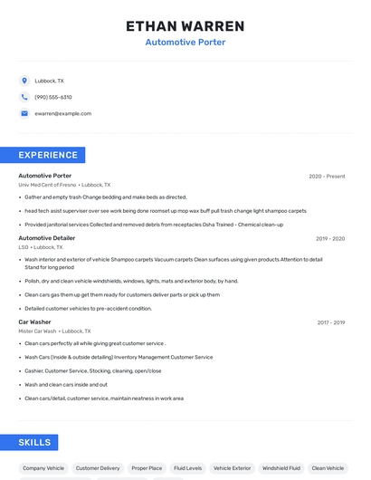 Automotive porter skills for your resume and career