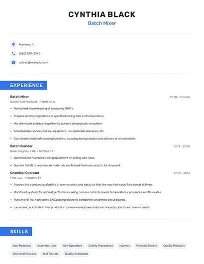Batch mixer skills for your resume and career
