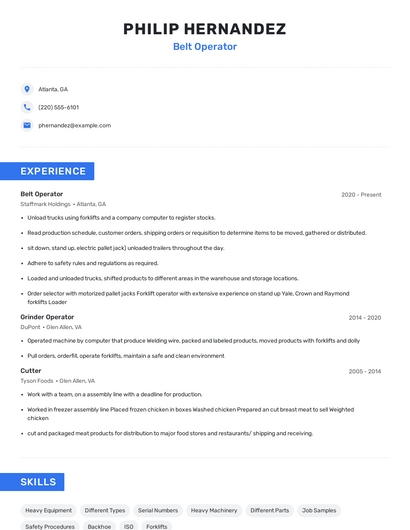The most important skills for a belt operator resume and required skills for a belt operator to have include: