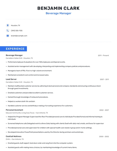 Choose from 10+ customizable beverage manager resume templates