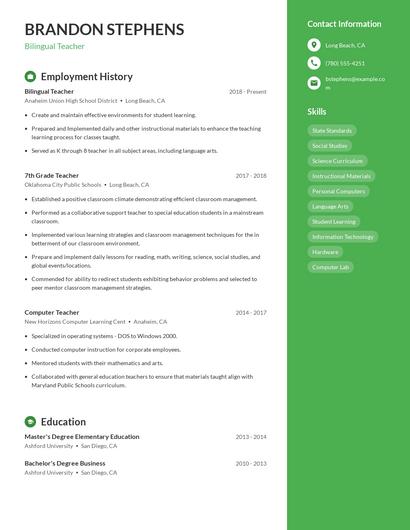 When your background is strong enough, you can start writing your bilingual teacher resume.