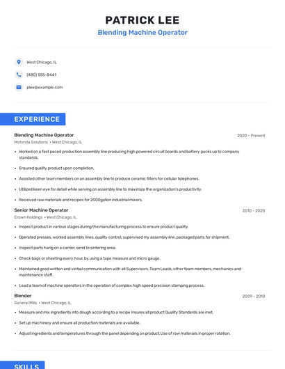 Choose from 10+ customizable blending machine operator resume templates