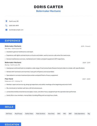 Choose from 10+ customizable boilermaker mechanic resume templates