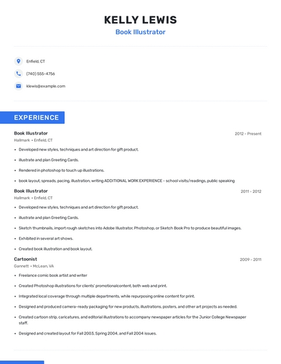 The most important skills for a book illustrator resume and required skills for a book illustrator to have include: