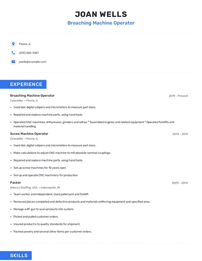 Choose from 10+ customizable broaching machine operator resume templates