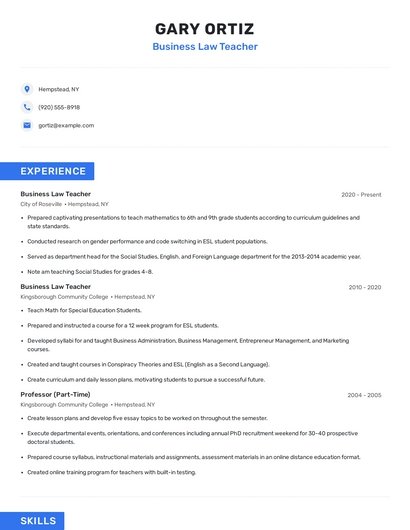 Business law teacher skills for your resume and career