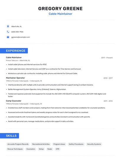Cable maintainer skills for your resume and career