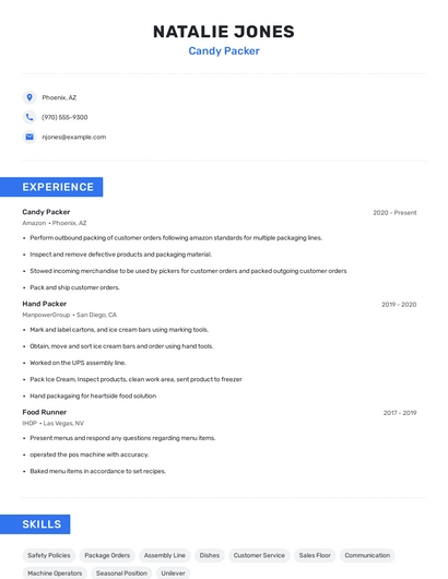 The most important skills for a candy packer resume and required skills for a candy packer to have include: