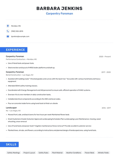 Choose from 10+ customizable carpentry foreman resume templates