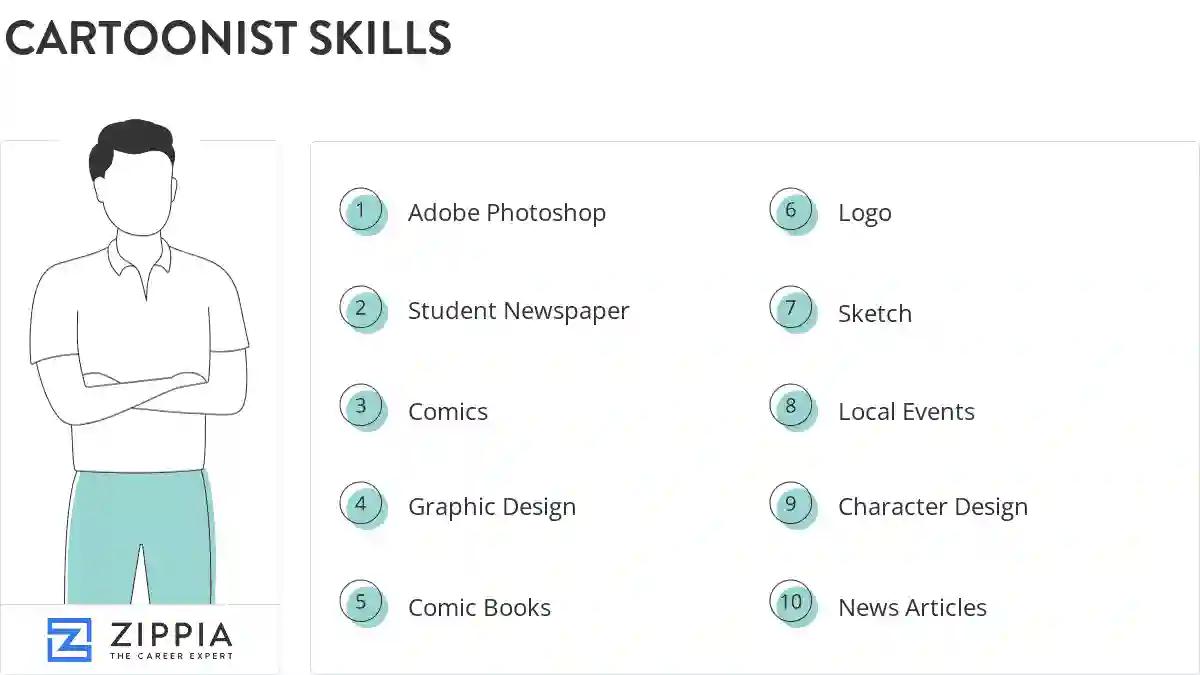 The most important skills for a cartoonist resume and required skills for a cartoonist to have include: